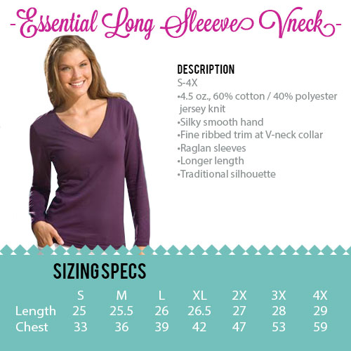 Long Sleeve V-neck Essential Tee. This is a different brand than the standard black vneck. It is still a ladies fit, but please compare spec sheet to see any sizing difference.
