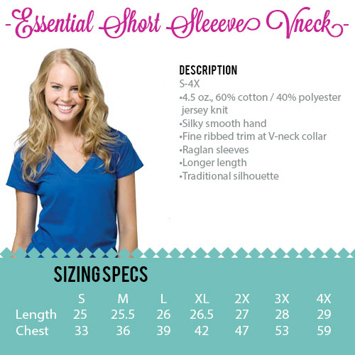 Short Sleeve V-neck Essential Tee. This is a different brand than the standard black vneck. It is still a ladies fit, but please compare spec sheet to see any sizing difference.